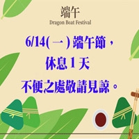 2021 端午節於6/14(一)休息1天,不便之處敬請見諒。