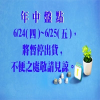 2021 年中盤點於6/24(四)~6/25(五) ,將暫停出貨,不便之處敬請見諒。 -