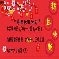 2022 春節休假農曆春節休假 於1/31(一)~2/6(日) -