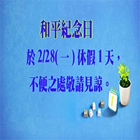 2022 和平紀念日於2/28 (一)休假一天,不便之處敬請見諒。 -