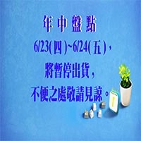 2022 年中盤點於6/23(四)~6/24(五) ,將暫停出貨,不便之處敬請見諒。 -