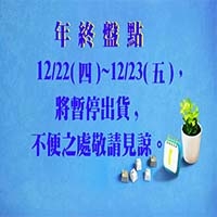 2022 終盤點於12/22(四)~12/23(五) ,將暫停出貨,不便之處敬請見諒。 -