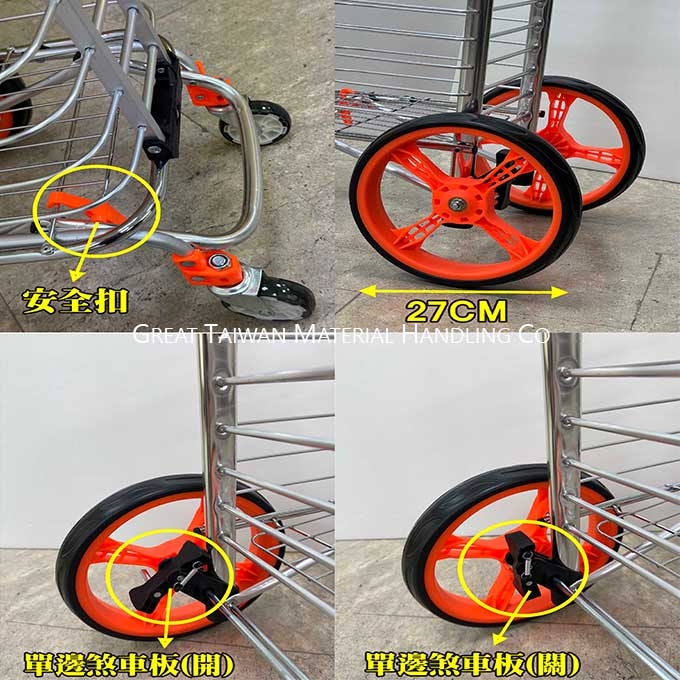 H-001-2WL 270 mm 大輪鋁製購物籃車